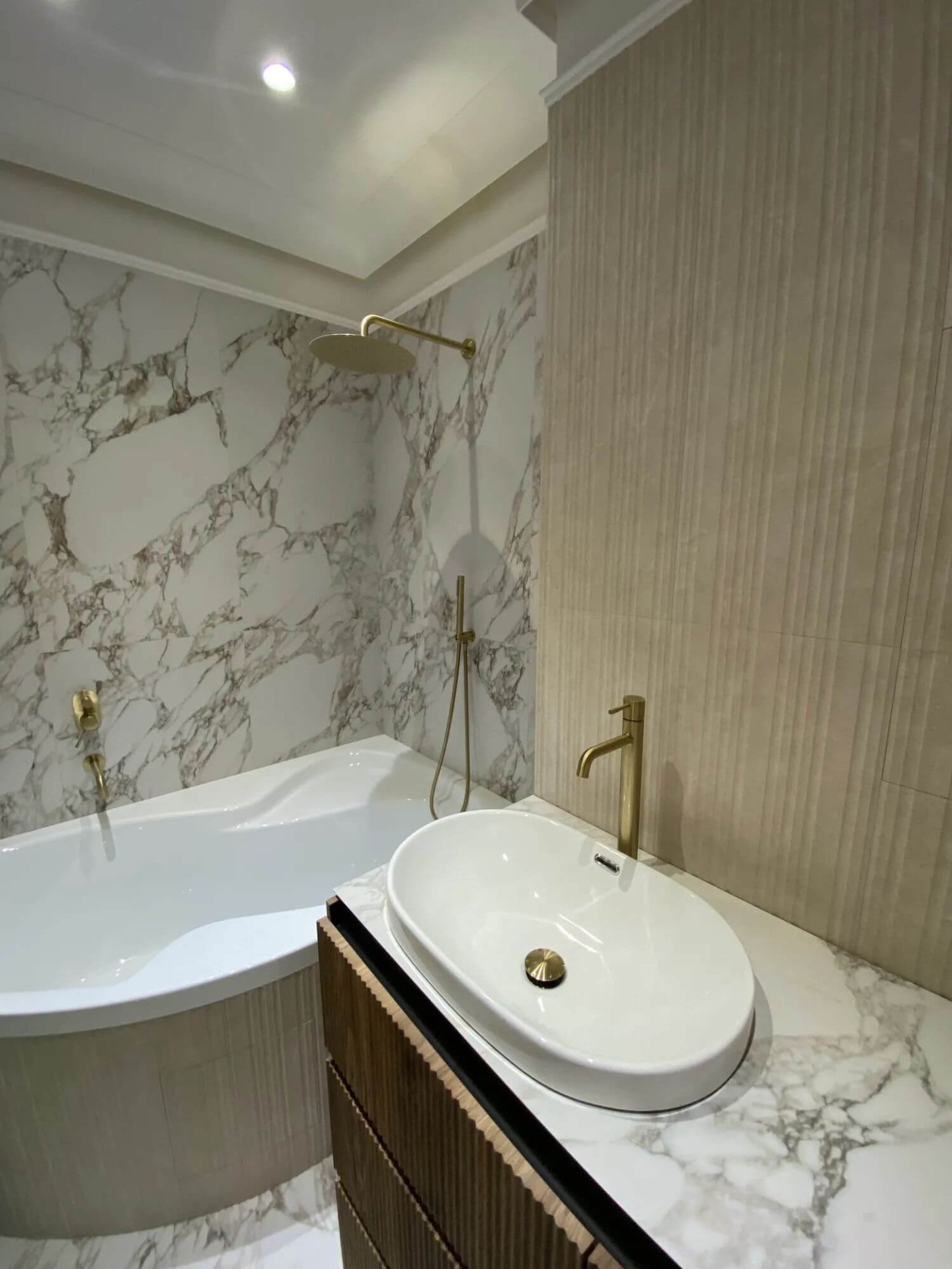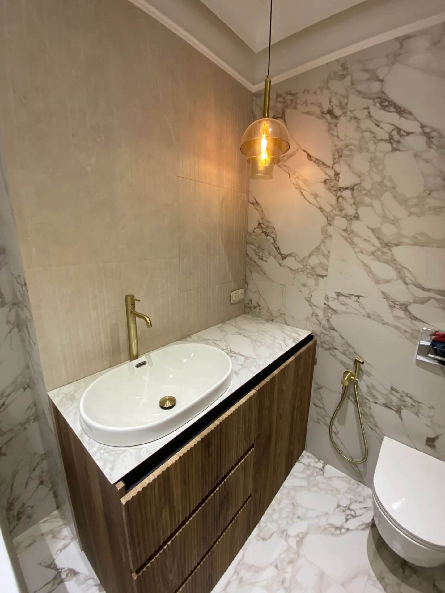 Портфолио Укладки крупноформатного керамогранита в санузле на ул. Полозова