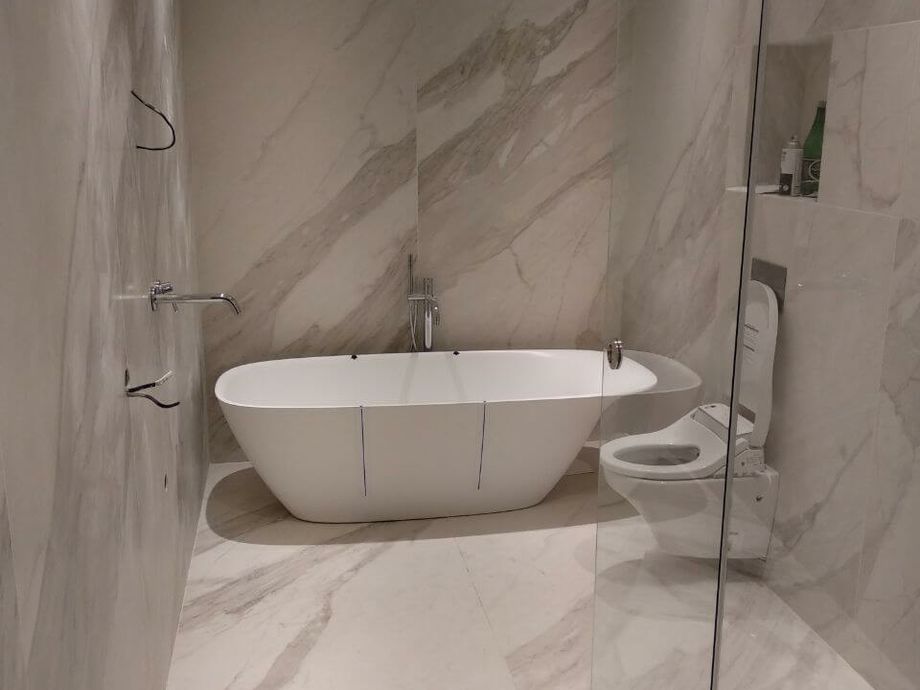 Портфолио Укладки крупноформатного керамогранита в санузле на Загородном пр.