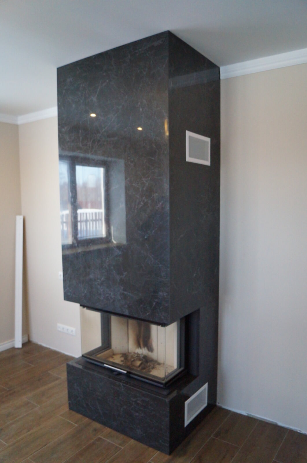 Портфолио Облицовки камина крупноформатным керамогранитом в Коммунаре