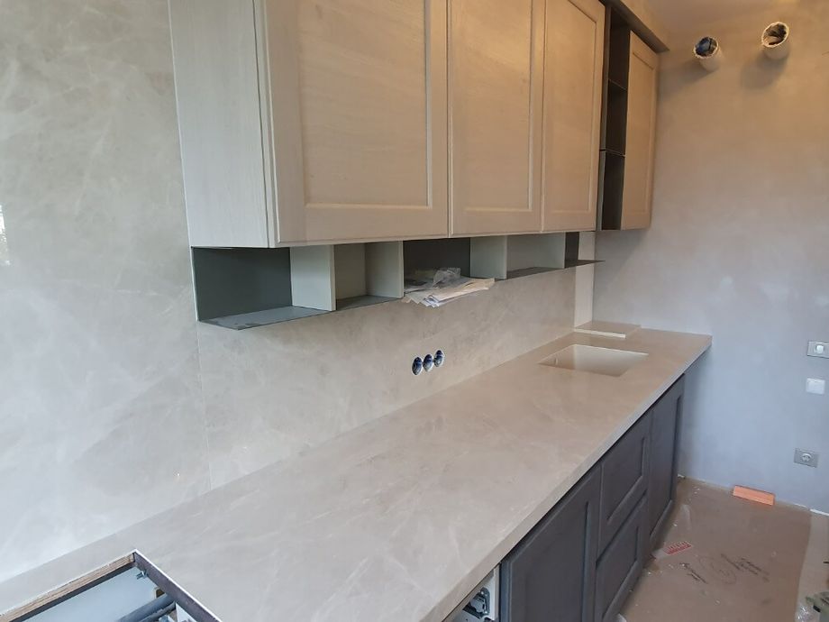 Портфолио Укладки крупноформатного керамогранита на кухонный фартук в Пушкине