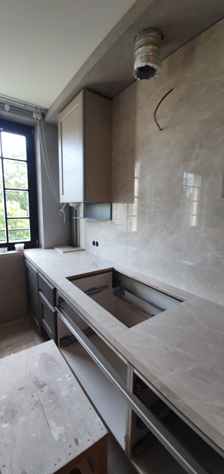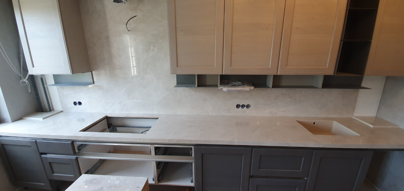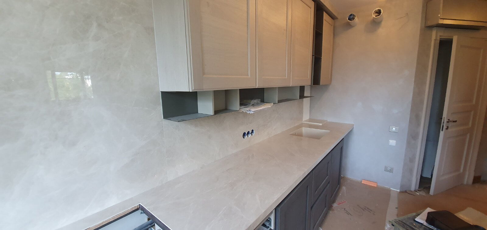 Портфолио Укладки крупноформатного керамогранита на кухонный фартук в Пушкине