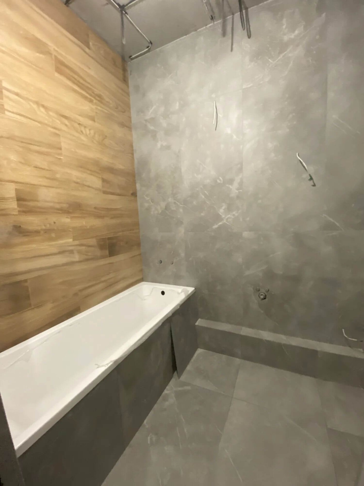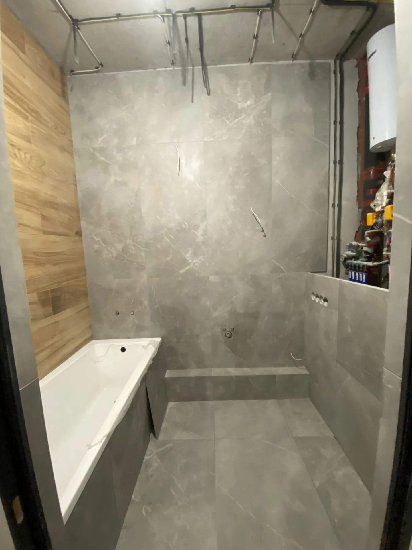 Портфолио Укладки крупноформатного керамогранита в санузле на ул. Марата